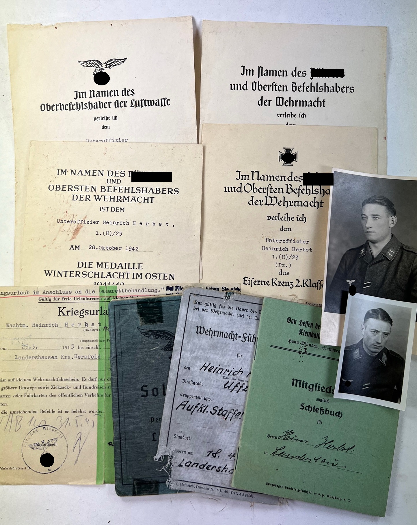 A group of documents from the possessions of the Unteroffiziers Heinrich Herbst. All documents in a good, slightly used condition. Comprised of documents for: