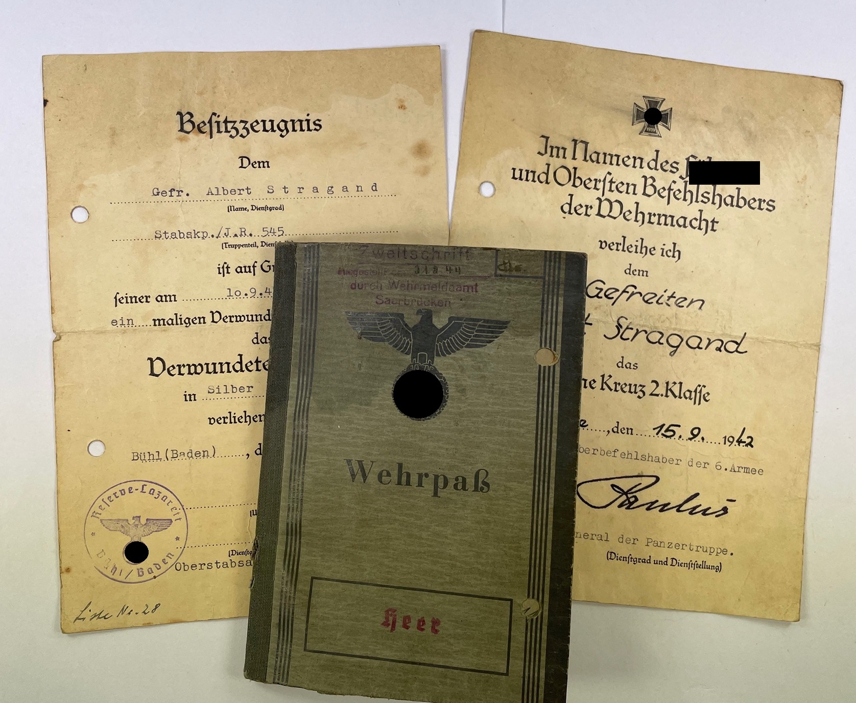 A group of documents from the Unteroffiziers Albert Stragand. Comprised of documents for: