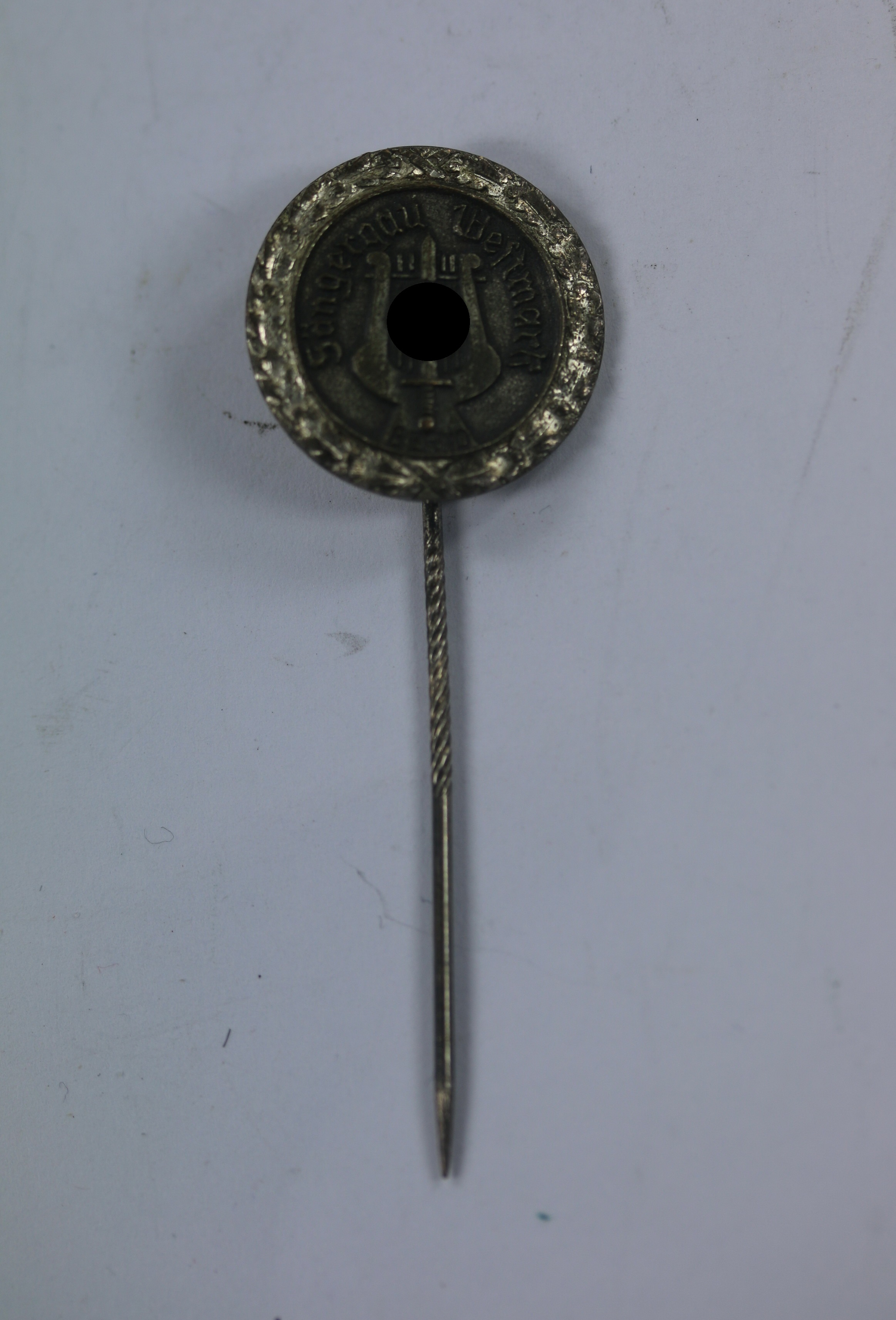 Zink, versilbert, sehr guter, nur leicht getragener Zustand. Mit leichter Patina. Selten!