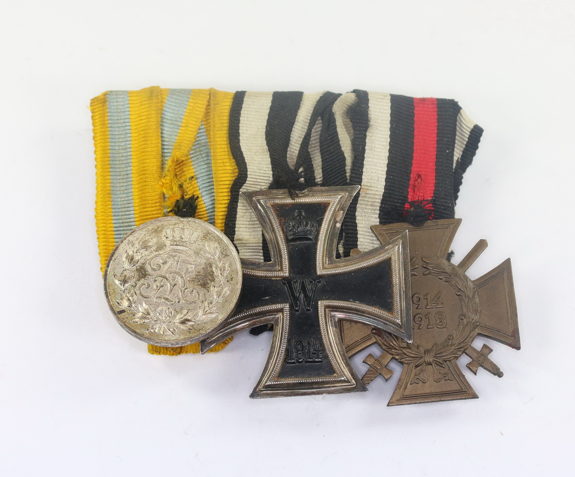 Obviously worn by a proud Saxony soldier who had his Friedrich August Medal, against regulations, mounted in front of the Iron Cross.