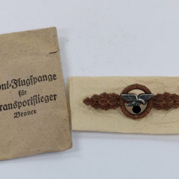 Frontflugspange für Transportflieger in Bronze, in Verleihungstüte
