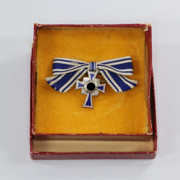 Miniatur Mutterkreuz in Silber an Schleife, Hst. L/15, in Verkaufsschachtel