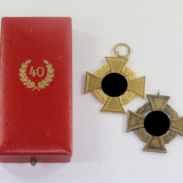 Etui Kriegsverdienstkreuz 1. Klasse mit Schwertern, mit Hakenkreuz Kerbach & Österheld