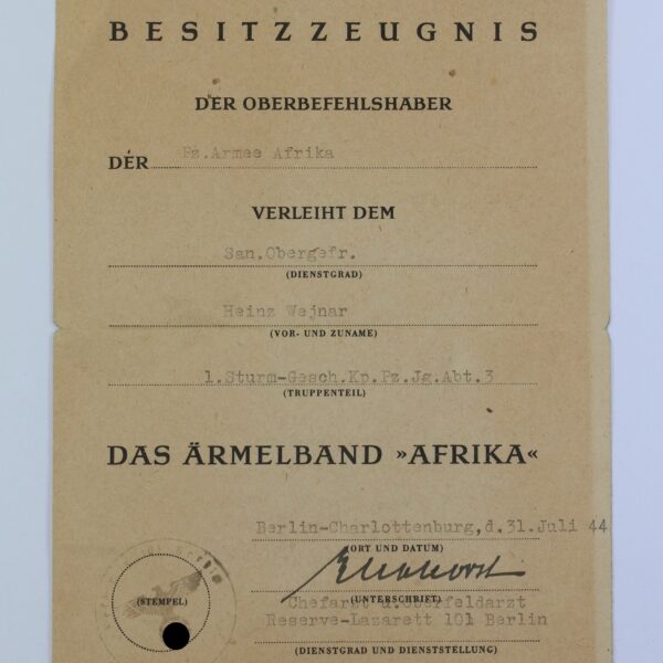 Panzerkampfabzeichen in Bronze, Wilhelm Deumer, Lüdenscheid