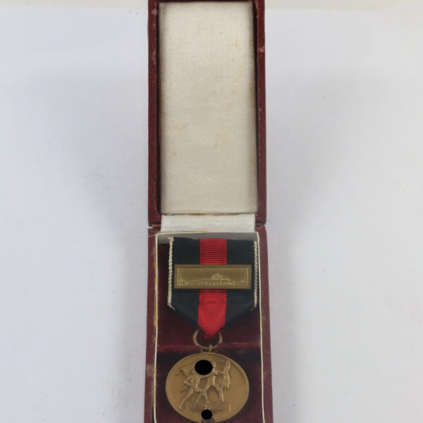 Anschlußmedaille Sudetenland (1. Oktober 1938), mit Spange Pragerburg, im Etui