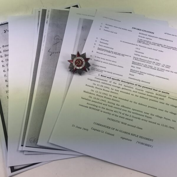 Sowjetunion, Orden des Vaterländischen Krieges 2. Klasse mit Archiv Material