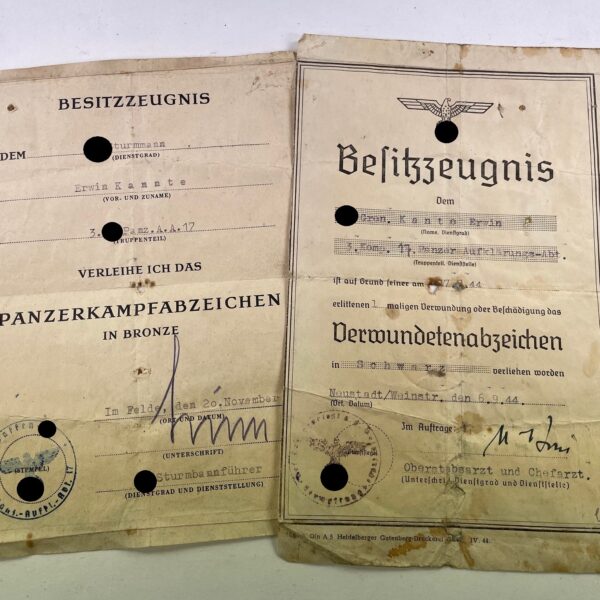 Urkunden, SS-Panzer Aufklärungsabteilung 17 Götz von Berlichingen (SS-Panz. A.A. 17)