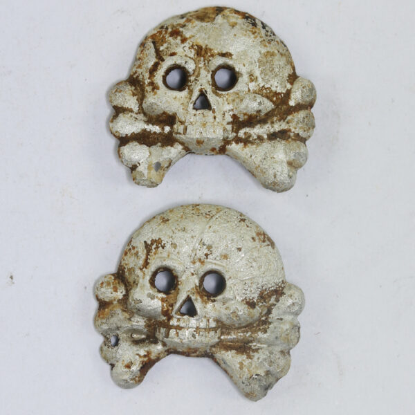 Wehrmacht Heer, Paar Totenköpfe für die Kragenspiegel der Panzertruppe (Aluminium)