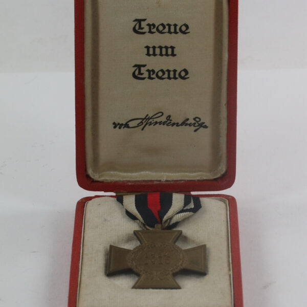 Ehrenkreuz für Kriegsteilnehmer, Hst. Ad. B.&L. , im Etui Treue um Treue von Hindenburg