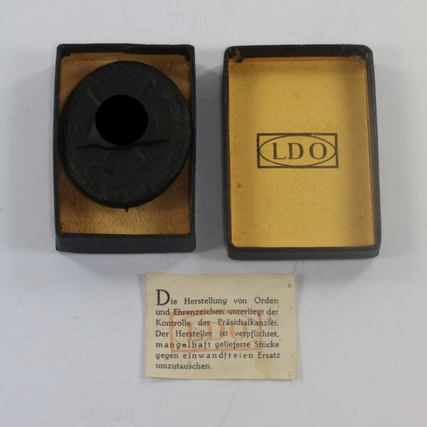 Verwundetenabzeichen in Schwarz 1939, Hst. L54, LDO Schachtel, mit LDO Garantie Zettel