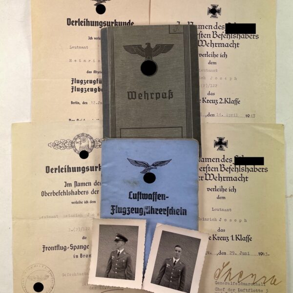Luftwaffe, Dokumentengruppe Doppelabzeichen, Urkunden + Wehrpaß + Flugzeugführerschein