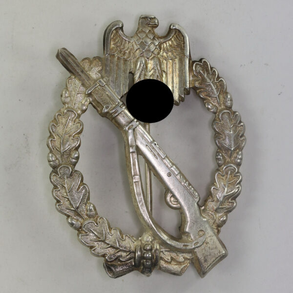 Infanterie Sturmabzeichen in Silber, Paul Meybauer, Berlin, mit ausgeschnittenen Hakenkreuz(!)
