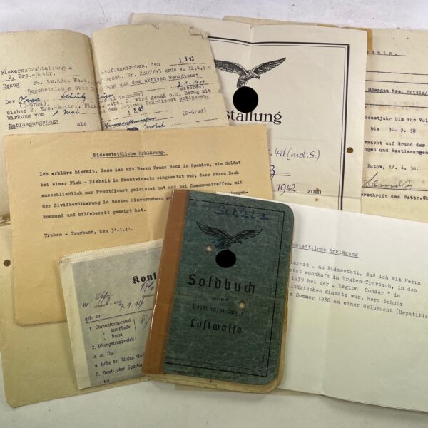 Soldbuch + Papiere Spanienkreuz in Silber mit Schwertern, Hugo Schulz