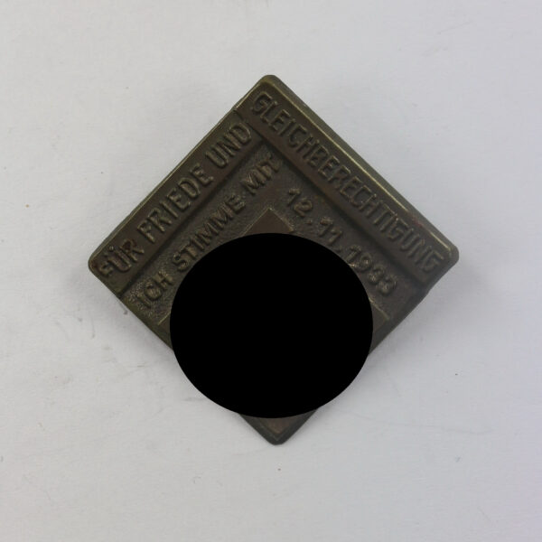 Abzeichen, Ja! Für Frieden und Gleichberechtigung Ich stimme mit Ja! 12.11.1933