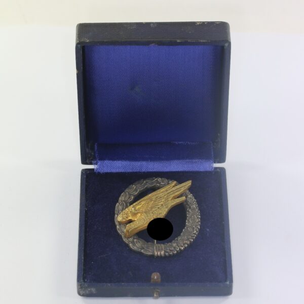 Fallschirmschützenabzeichen der Luftwaffe, Hst. C.E. Juncker Berlin S.W., im Etui