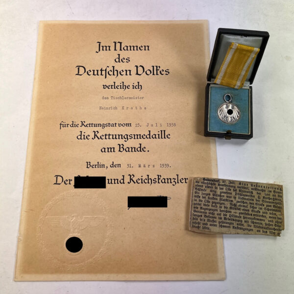 Rettungsmedaille am Bande, Hst. PR. M. BLN. 835, im Etui + Urkunde