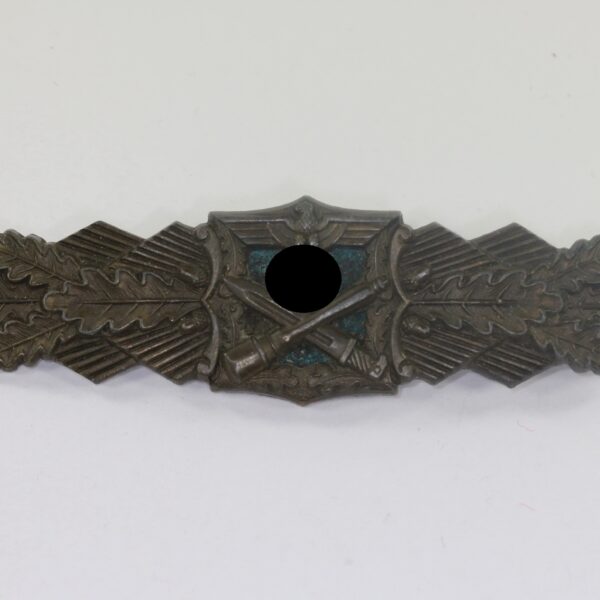Nahkampfspange in Bronze, Hst. A.G.M.u.K., blaue Platte (!)