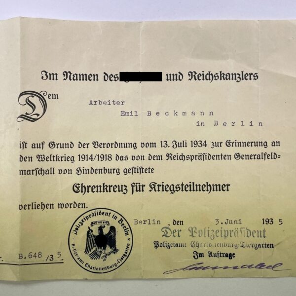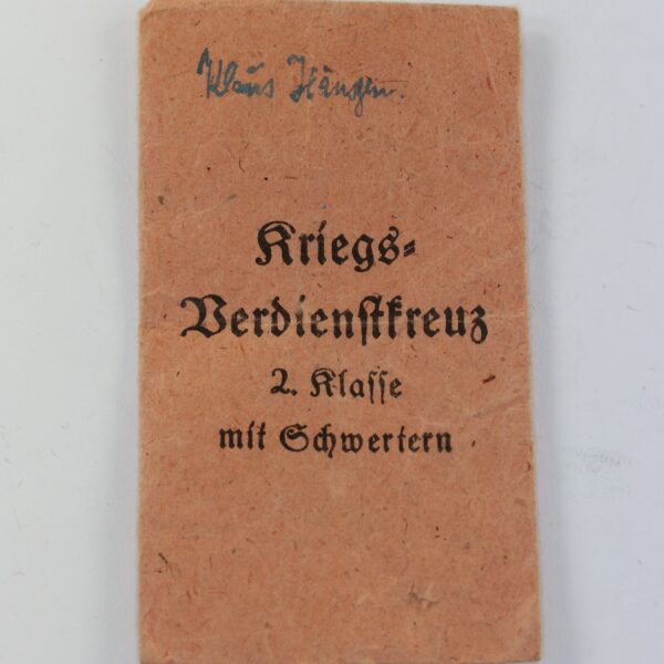Verleihungstüte Kriegsverdienstkreuz 2. Klasse mit Schwertern, Otto Zappe
