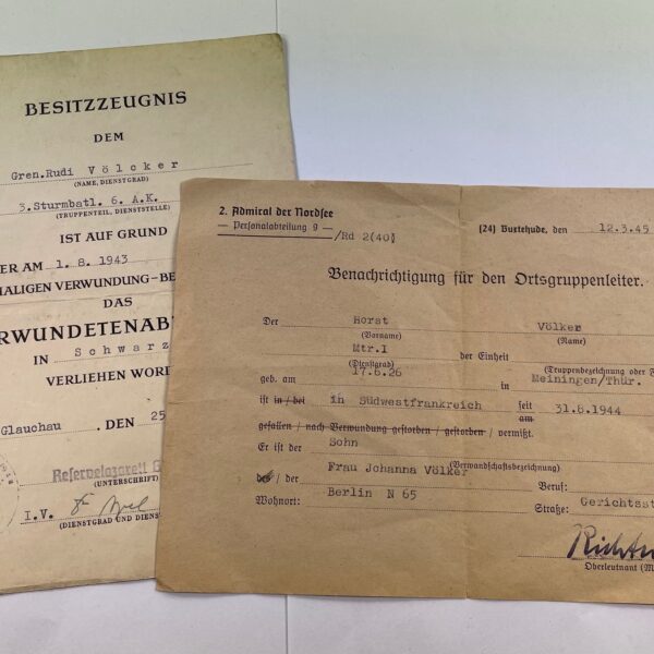 Besitzzeugnis Verwundetenabzeichen Schwarz, Sturmbataillon 6. A.K.