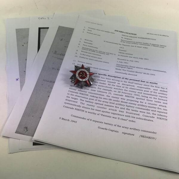 Sowjetunion, Orden des Vaterländischen Krieges 2. Klasse mit Archiv Material