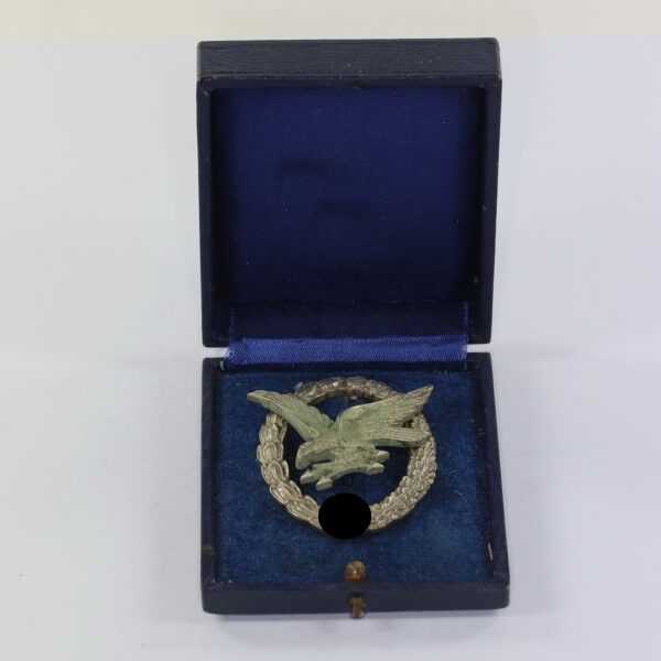 Fliegerschützenabzeichen der Luftwaffe mit Blitzbündel, Hst. C.E. Juncker, im Etui