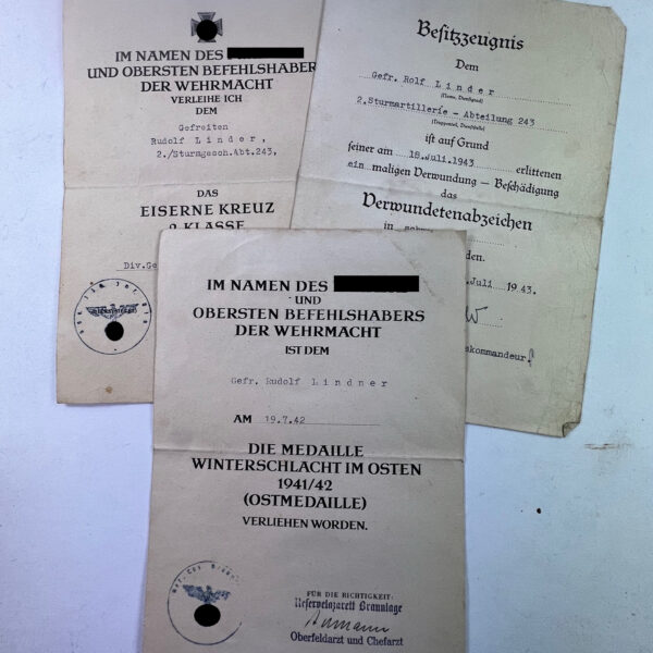 Urkunden + Erkennungsmarke Endkampf 1945 (!), Pommersches Füsilier-Bataillon 104