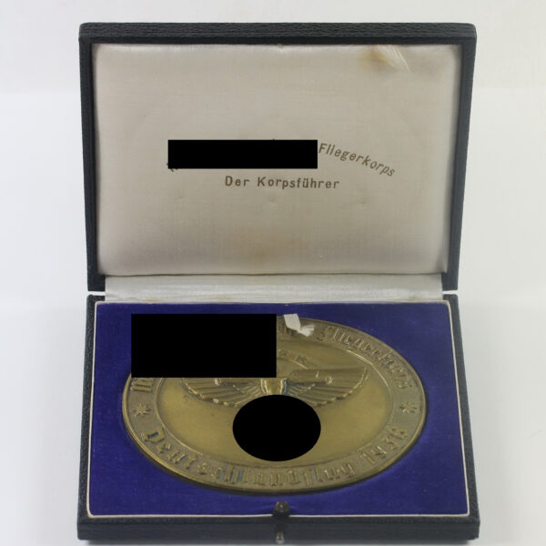 Nationalsozialistisches Fliegerkorps (NSFK), Plakette „Deutschlandflug 1938“, mit Etui