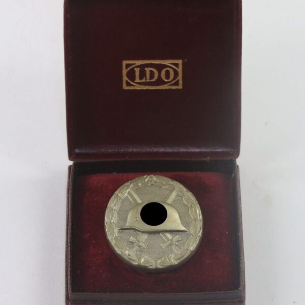 Verwundetenabzeichen in Silber 1939, Hst. L/56 (Buntmetall), im LDO Etui