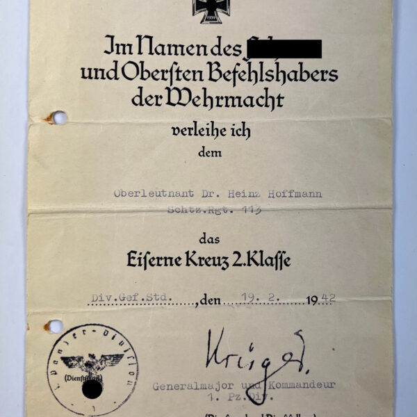 Urkunde Eisernes Kreuz 2. Klasse 1939, Schützenregiment 113 (1. Panzerdivision)