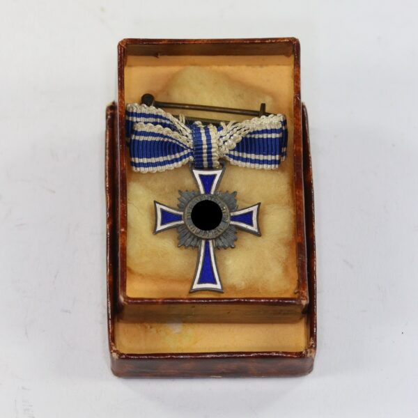 Miniatur Mutterkreuz in Silber an Schleife, in Verkaufsschachtel