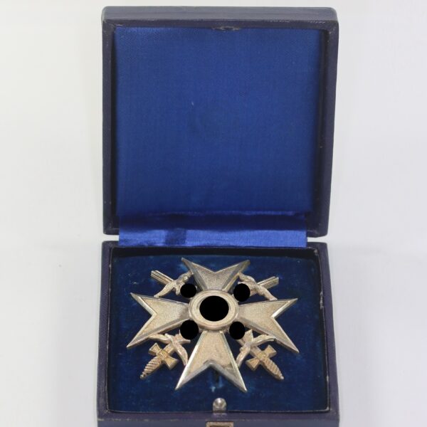Spanienkreuz in Silber mit Schwertern, Godet 900, im Etui
