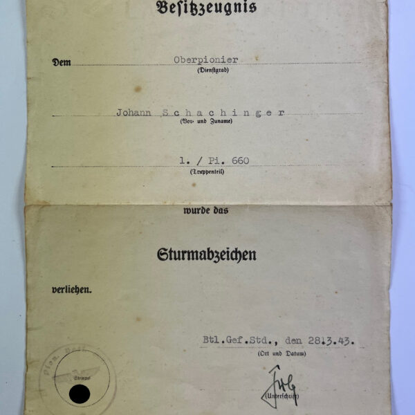 Deutsches Kreuz in Gold, Deschler (schwer) 4 Nieten, Leutnant Albert Wollenzien