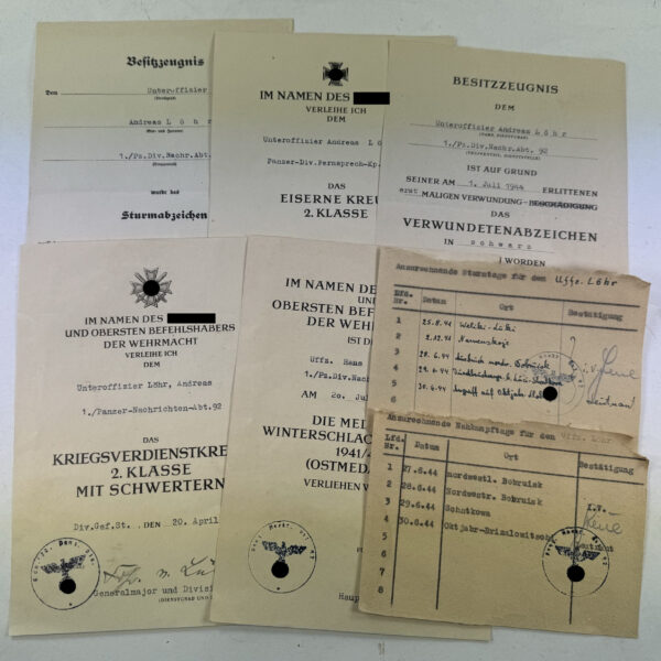 Urkunden Nachlass Panzer Divisions Nachrichten Abteilung 93
