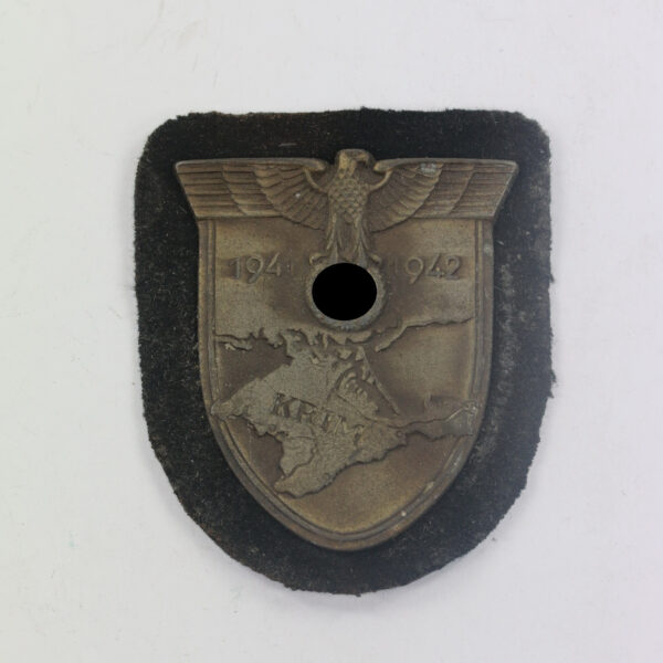 Krimschild auf schwarzen Panzer (!) Stoff, Wilhelm Deumer, Lüdenscheid
