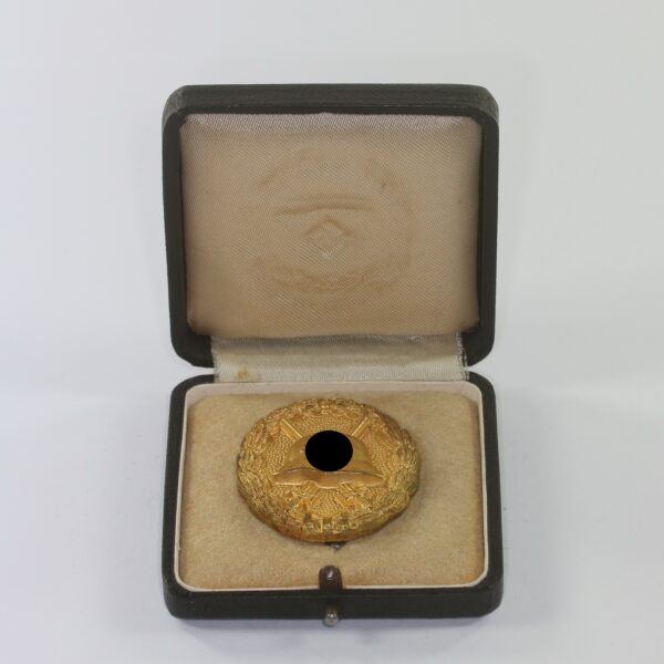 Verwundetenabzeichen in Gold, 1. Form hohl verbödet (!), im LDO Etui 1. Form