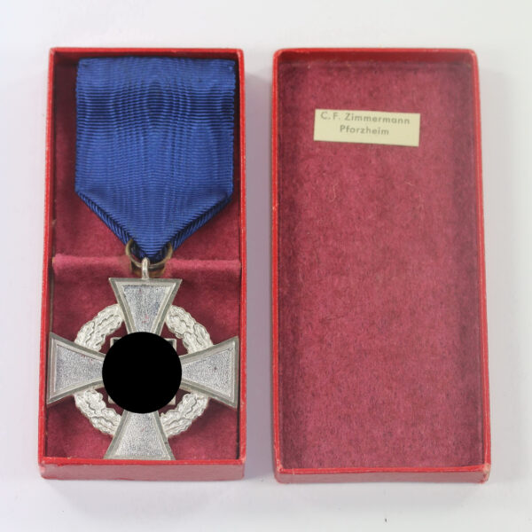 Treudienstehrenzeichen in Silber (25 Jahre), im Etui C.F. Zimmermann Pforzheim