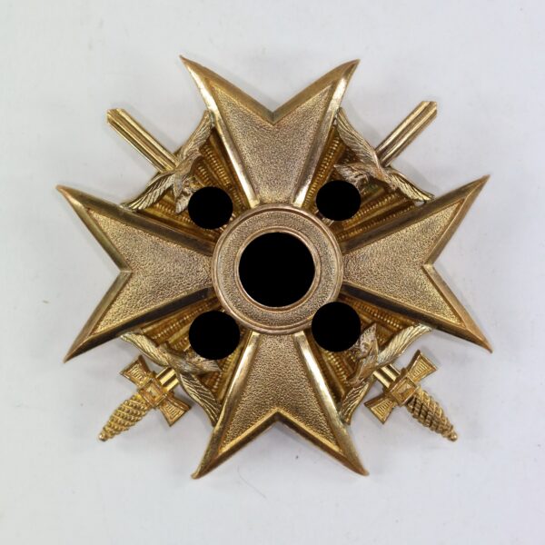 Spanienkreuz in Gold mit Schwertern, Wilhelm Deumer, an Schraubscheibe (!)