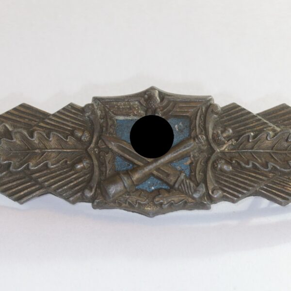 Nahkampfspange in Bronze, Hst. A.G.M.u.K., blaue Platte (!)