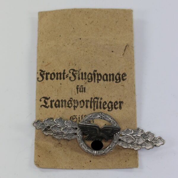 Frontflugspange für Transportflieger in Silber, in Verleihungstüte (!) Friedrich Orth