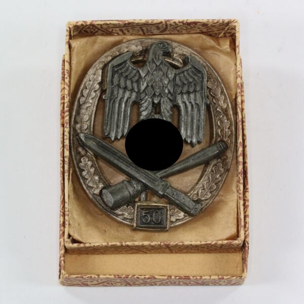 Allgemeines Sturmabzeichen mit Einsatzzahl 50, Hst. RK, in Verleihungsschachtel