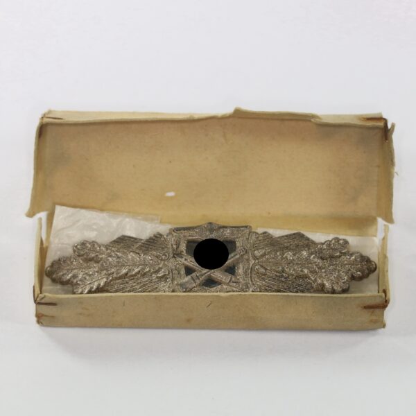 Nahkampfspange in Silber, Hst. FLL, in Verleihungsschachtel – Nahkampfspange versilbert