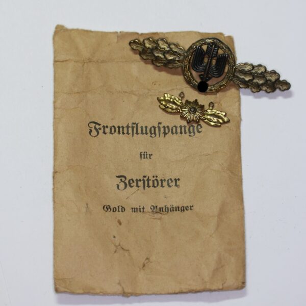 Frontflugspange für Zerstörer in Gold mit Sternhänger, Hst. Osang, in Verleihungstüte Osang