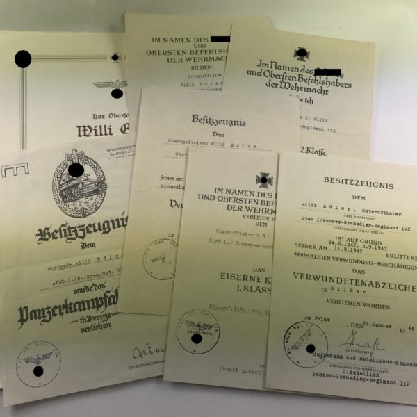 Urkunden Gruppe „Unteroffizier Willi Edler“ – Panzergrenadier