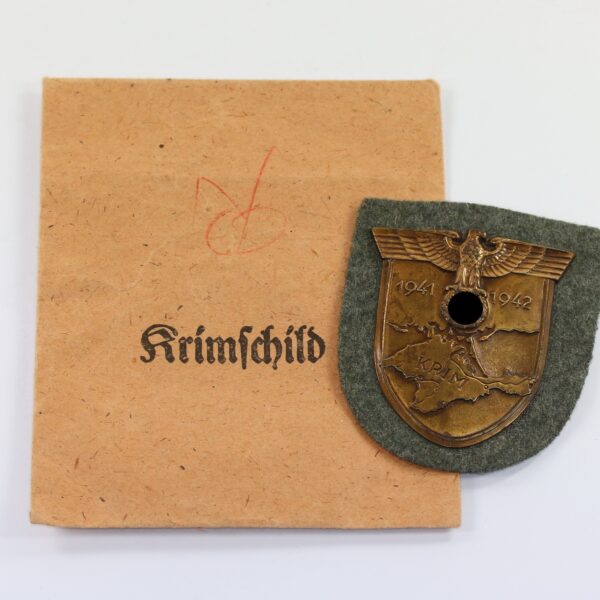 Krimschild auf Heeresstoff, in Verleihungstüte, Friedrich Orth
