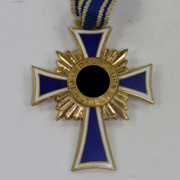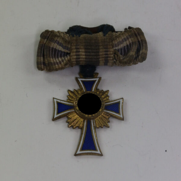 Miniatur Mutterkreuz in Gold an Schleife, Hst. L/14 (Friedrich Orth, Wien)