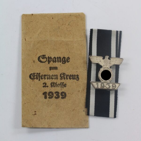 Wiederholungsspange 2. Klasse 1939, in Verleihungstüte J.E. Hammer & Söhne Geringswalde