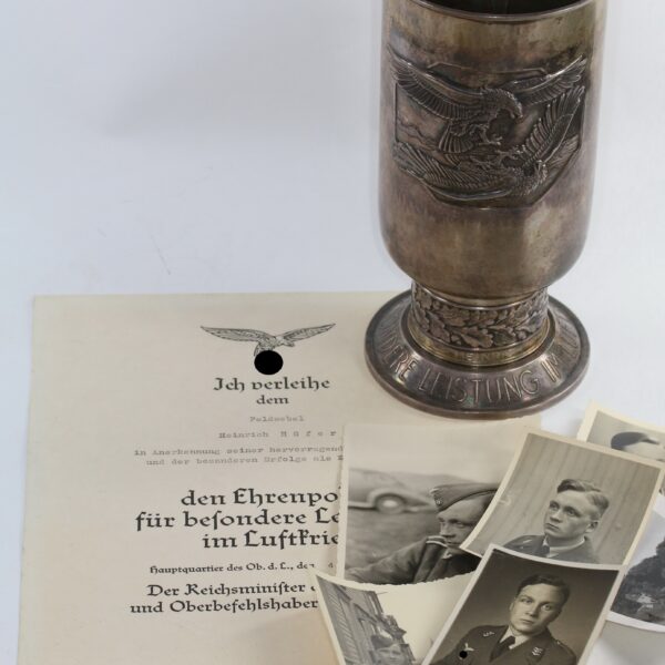 Ehrenpokal für besondere Leistungen in Luftkrieg, Silber, mit Urkunde 1940 verliehen (!)