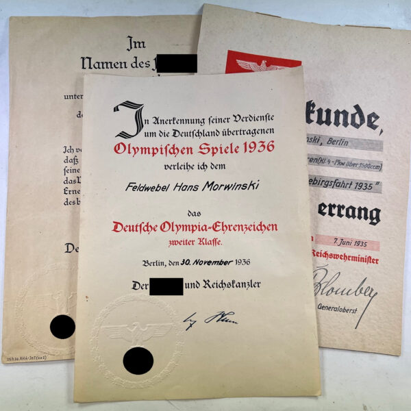 Urkunde Deutsches Olympia-Ehrenzeichen 2. Klasse (Olympia 1936 Berlin)