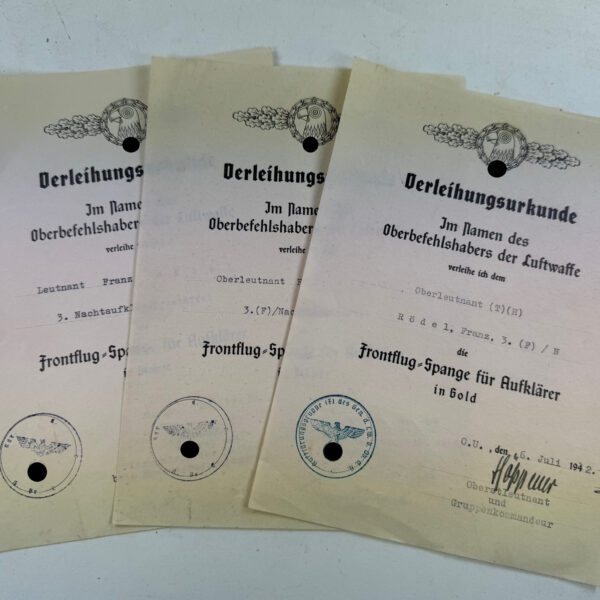 3 Urkunden Frontflugspange für Aufklärer – DK Träger 3. Nachtaufklärungsstaffel