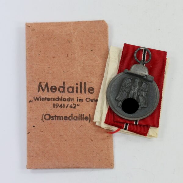 Ostmedaille, Hst. 19, in Verleihungstüte, Hauptmann Fritz Merkl
